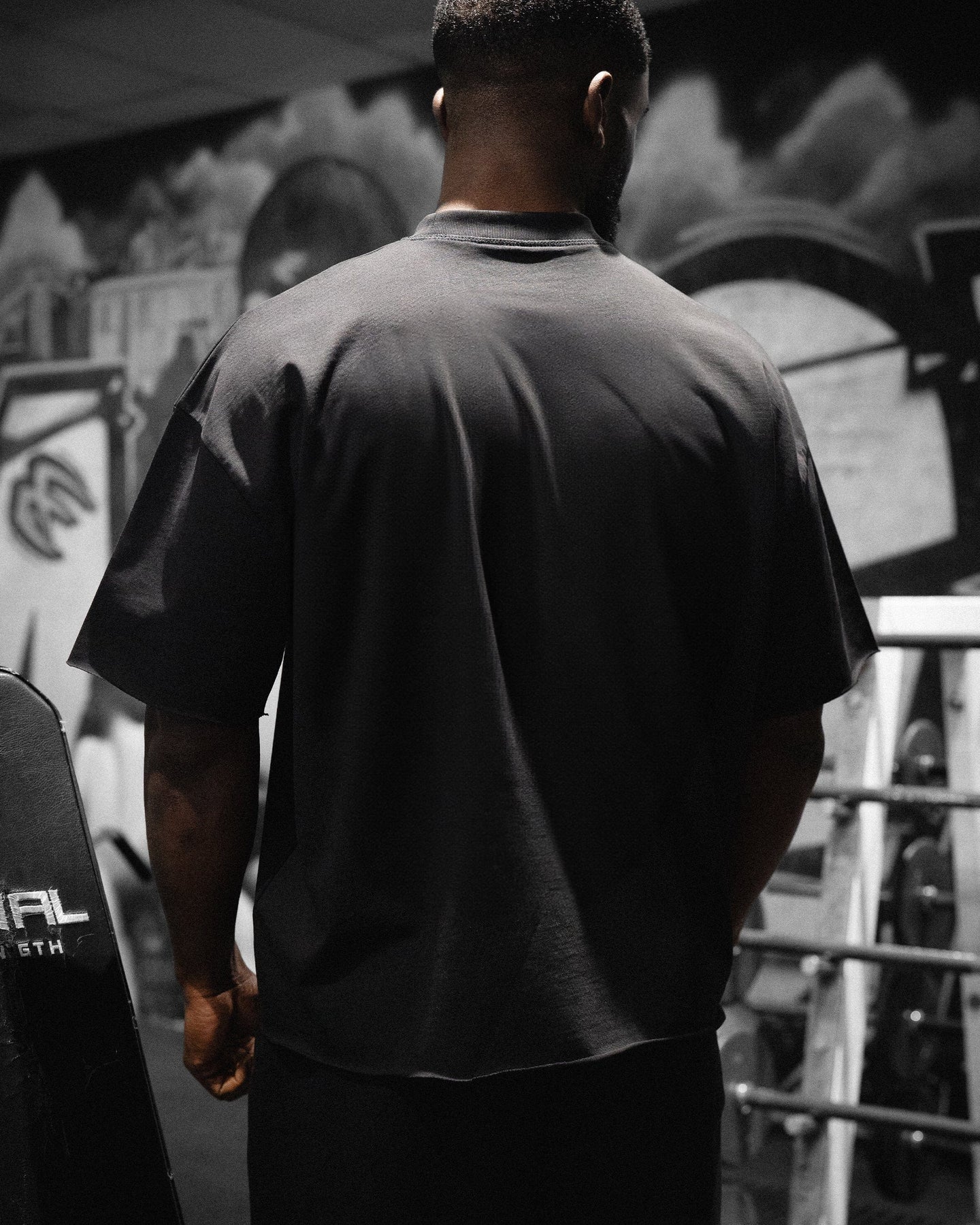 BOX V2 is the evolution - a box-fit crop with the perfect length (not a belly-top), thick rib neck that still holds structure without strangling you, and raw-edge hems inspired by the 70s rag-top bodybuilding era, when lifters used scissors and instinct to create their own fit.