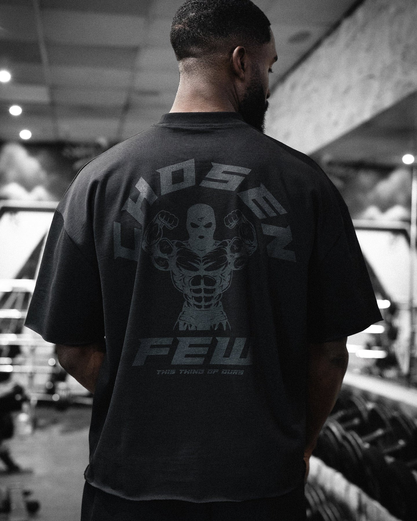 BOX V2 is the evolution - a box-fit crop with the perfect length (not a belly-top), thick rib neck that still holds structure without strangling you, and raw-edge hems inspired by the 70s rag-top bodybuilding era, when lifters used scissors and instinct to create their own fit.