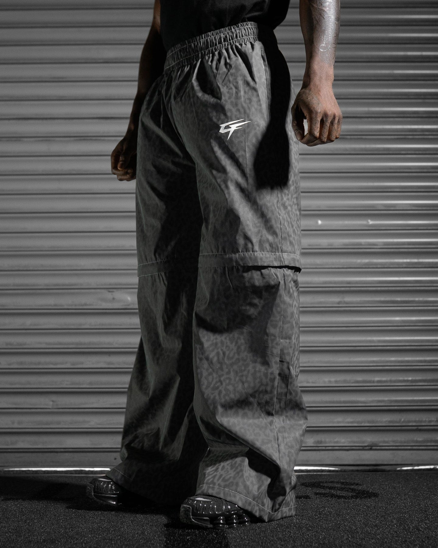 Technical by nature, the fabric doubles as windproof and water-resistant, making them just as functional as they are statement-making. Finished with silicone prints or embroidery depending on the colourway, these pants are a seasonal must-have built for impact.